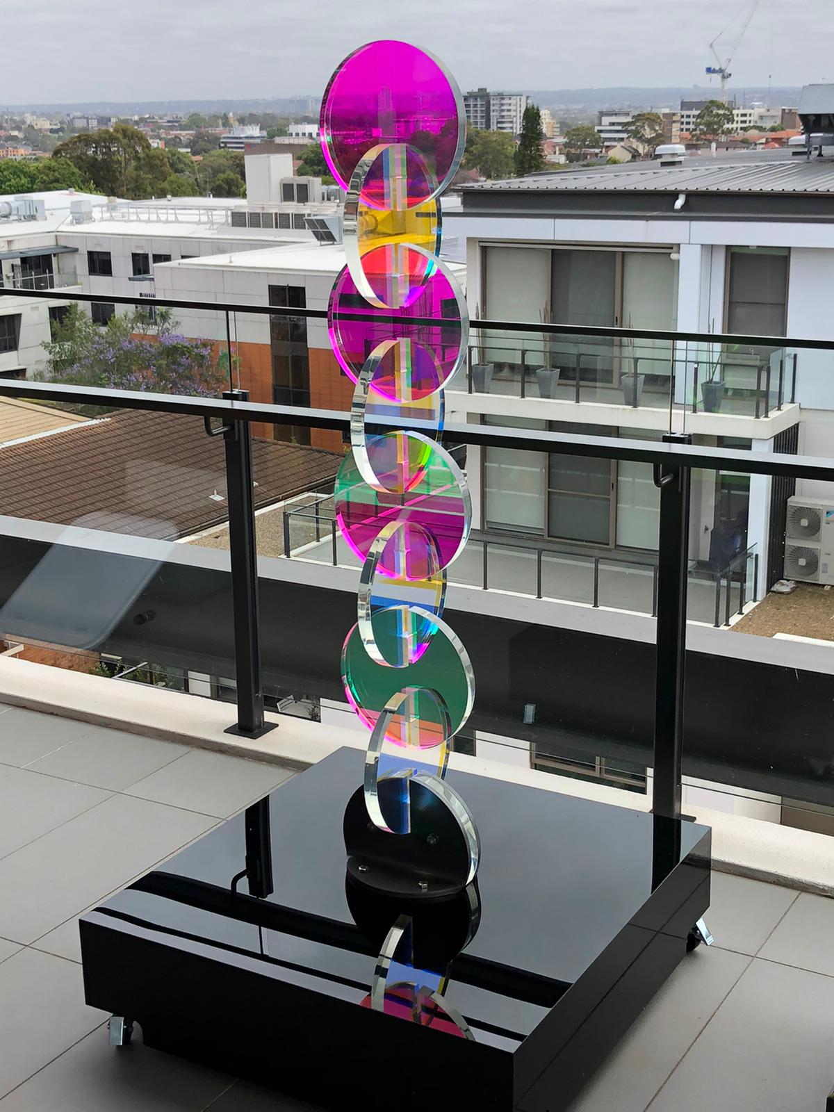 Acrylic Plinth on Castors with Colorful Discs